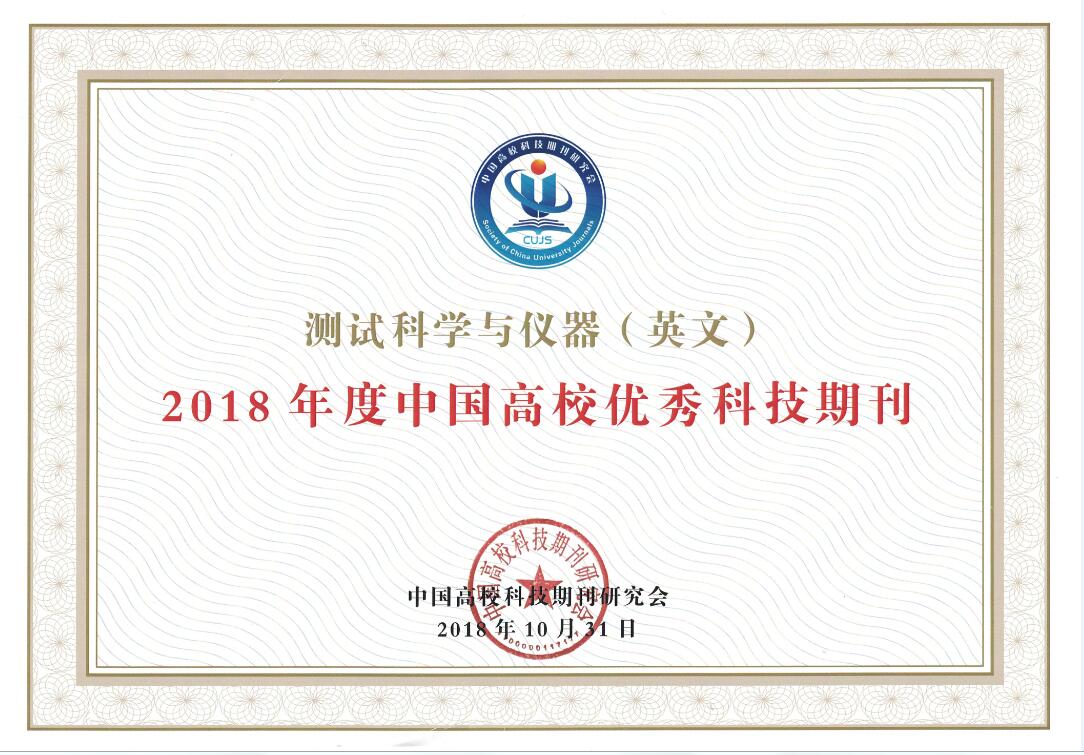 在中国高校科技期刊研究会主办的“2018中国高校杰出•百佳•优秀科技期刊”遴选活动中,我校主办的Journal of measurement science and instrumentation《测试科学与仪器》(英文版)被评为2018年度中国高校优秀科技期刊”。