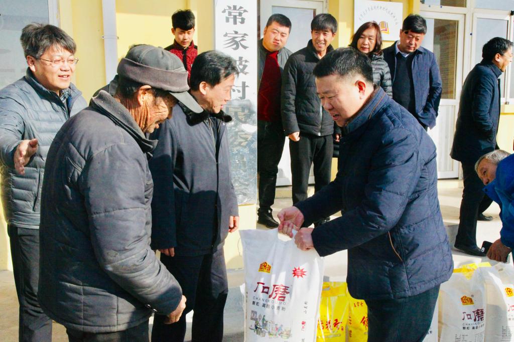 慰问中,在当地县、乡领导陪同下,校领导先后来到常家坡村、后五王城村,代表学校向全体村民发放了面、米、油等慰问品,并分别走进结对帮扶对象家中开展入户慰问并送上新春的祝福。