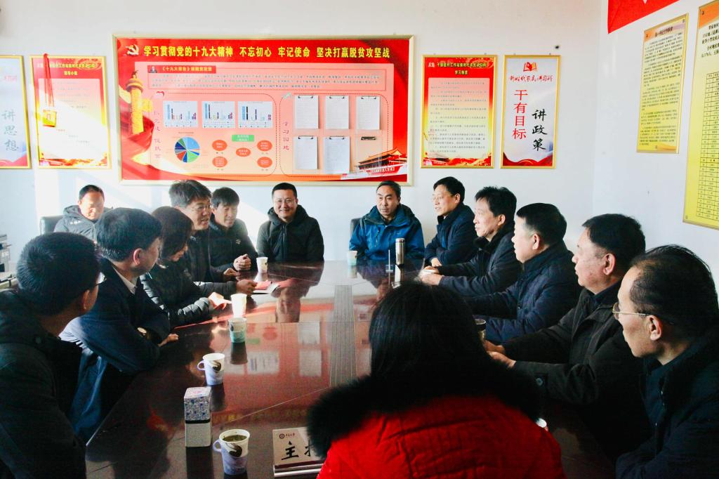 在学校驻村工作站,校领导与县、乡领导及我校扶贫工作队员进行了座谈。驻村工作队队长李琪汇报了近期工作内容和任务完成情况。县、乡领导表达了对学校的感谢以及对驻村工作队员积极努力工作的肯定。听取汇报后,校长沈兴全讲话指出,党和国家高度重视扶贫工作,贫困人口也是习总书记最牵挂的群体,做好扶贫工作意义重大。他表示,按照省委的部署和安排,我校始终重视并发挥学校优势,全力开展包村帮扶工作,取得显著成效。他说,此次前来慰问欣喜地看到,村民生活得到很大改善,村容村貌有了明显改观,精神文明建设也做得有声有色。这是校、县共同努力的结果。最后,沈校长对我校驻村工作队全体成员长期以来所付出的辛劳给予高度赞扬,对县、乡领导对驻村工作队的支持与帮助表示感谢。希望大家一如既往,共同配合,为全面打赢扶贫攻坚战而努力。