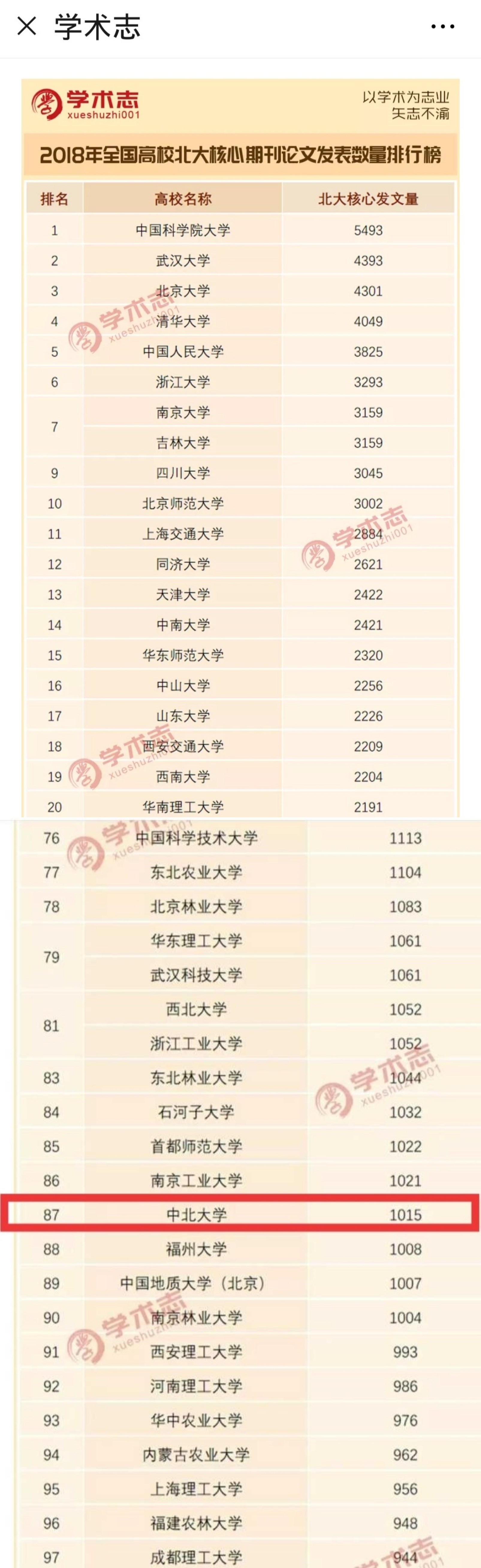 根据中国科学文献计量评价研究中心近日发布的《中国高校科研成果统计分析数据库》,在2018年全国高校北大核心期刊论文排行榜中,我校以1015篇位居87名。进入前100强。