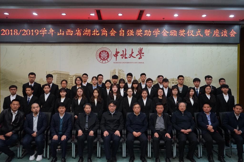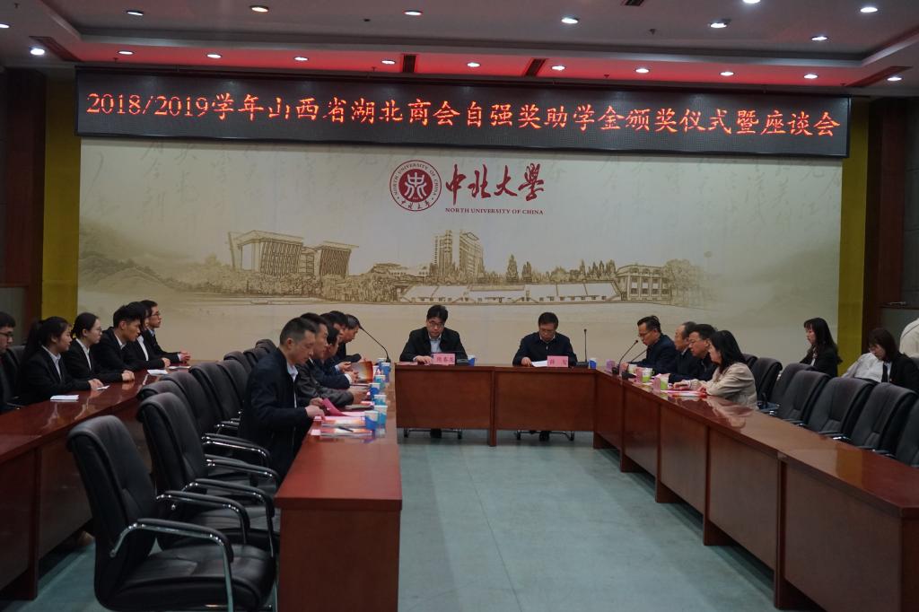 4月11日上午,2018/2019学年山西省湖北商会自强奖助学金颁奖暨座谈会在主楼15层会议室举行。我校党委副书记薛智,湖北省人民政府驻京办党组书记、主任隋春龙,湖北省人民政府驻山西办事处主任杨艳驹,山西省湖北商会会长段劲州及副会长廖朝阳、陈有兵、金超、王煦,我校党委宣传部部长薛实军、学生工作部副部长杨湖等出席会议并为获奖学生颁奖。