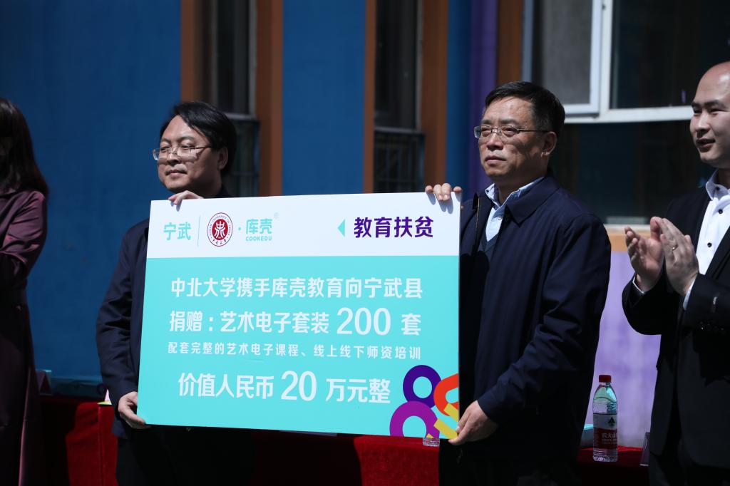 4月23日上午,我校携手校友企业库壳教育科技有限公司,在宁武县机关幼儿园举办对口帮扶宁武县艺术电子幼儿教具捐赠活动。库壳教育无偿为宁武县机关幼儿园提供了价值20万元的200套艺术电子套装教具、配套完整的艺术电子课程和线上线下师资培训。校党委副书记薛智、宁武县副县长李俊、校党委组织部部长贾献忠、宁武教育扶贫负责人刘彬、库壳教育科技有限公司运营总监张惠、宁武县教育科技局负责人等和幼儿园600余名师生参加捐赠仪式。