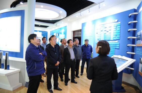 /杨守杰总经理(左一)陪同参观山东特种工业集团成果展厅/