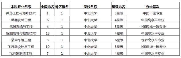 2019年5月,由艾瑞深中国校友会网编撰完成、科学出版社公开出版发行的《2019中国大学评价研究报告》,最新发布了2019中国大学一流专业排名榜单。我校机电工程学院的7个专业均榜上有名,其中弹药工程与爆炸技术专业全国排名第1,装甲车辆工程专业排名第3,武器系统与工程专业排名第4。