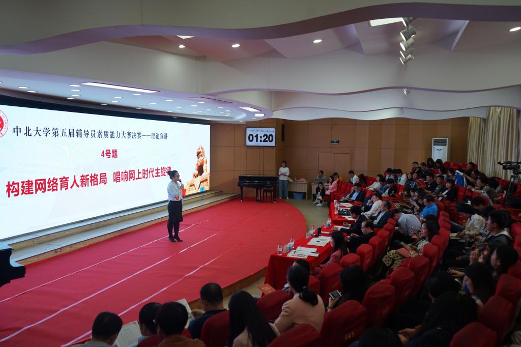 5月7日,大赛决赛在艺术学院12号楼一层东演播厅举行。决赛分理论宣讲和谈心谈话两个环节。理论宣讲环节主要考察辅导员对马克思主义理论、习近平新时代中国特色社会主义思想、党的十九大精神等理论的学习、宣传、阐释能力,以及对大学生开展理想信念教育、中国特色社会主义和中国梦宣传教育、社会主义核心价值观教育过程中的理论宣传以及阐释能力。谈心谈话采取情景再现的形式,考察辅导员对相关政策、校纪校规、学生特点、学生成长成才规律的把握及对学生的教育引导能力。两个环节的展示完成后,由评委进行综合评分。
