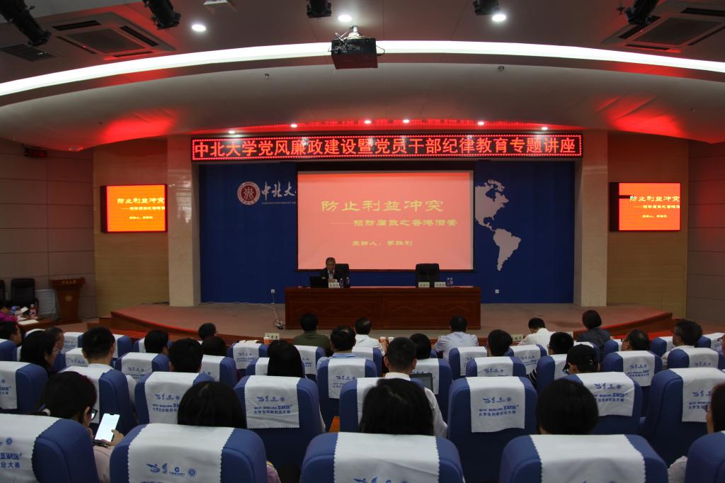 5月28日,我校党风廉政建设暨党员干部纪律教育专题讲座在瑾瑜国际会议中心举办。原中央纪委驻教育部纪检组副组长、监察部驻教育部监察局局长李胜利受邀以《防止利益冲突——预防腐败之香港借鉴》为题作专题讲座。全体在校校领导、全校党委委员、纪委委员、纪委监察专员、处级、科级干部等400余人听取了讲座。纪委书记王瑞芬主持讲座。