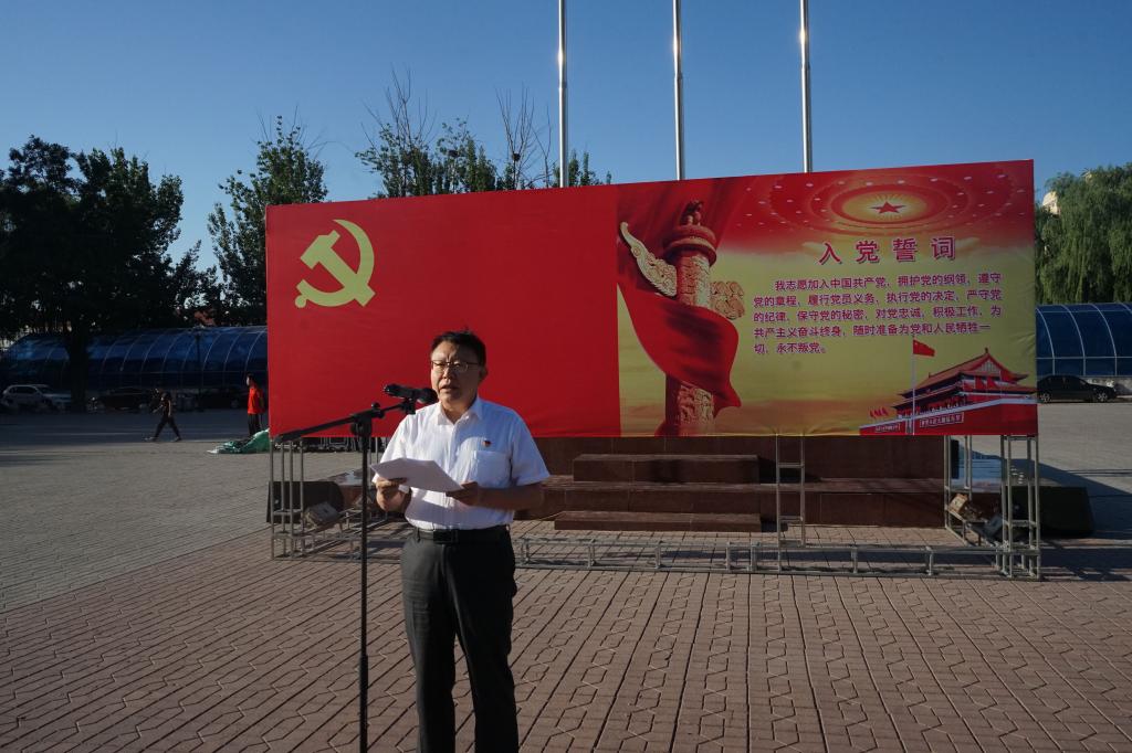 全体党员在校党委副书记薛智的带领下,高举右拳,庄严宣誓:我志愿加入中国共产党,拥护党的纲领,遵守党的章程,履行党员义务,执行党的决定,严守党的纪律,保守党的秘密,对党忠诚,积极工作,为共产主义奋斗终身,随时准备为党和人民牺牲一切,永不叛党。