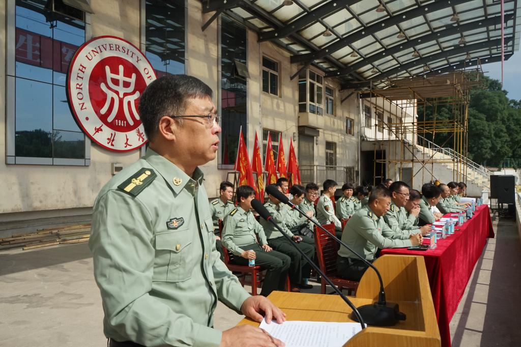 张景博同学代表全体参训学生发言表示,坚决遵守军训纪律,敢于吃苦,团结友爱,严格要求自己,以军人的姿态、军人的情怀去践行青春的誓言。