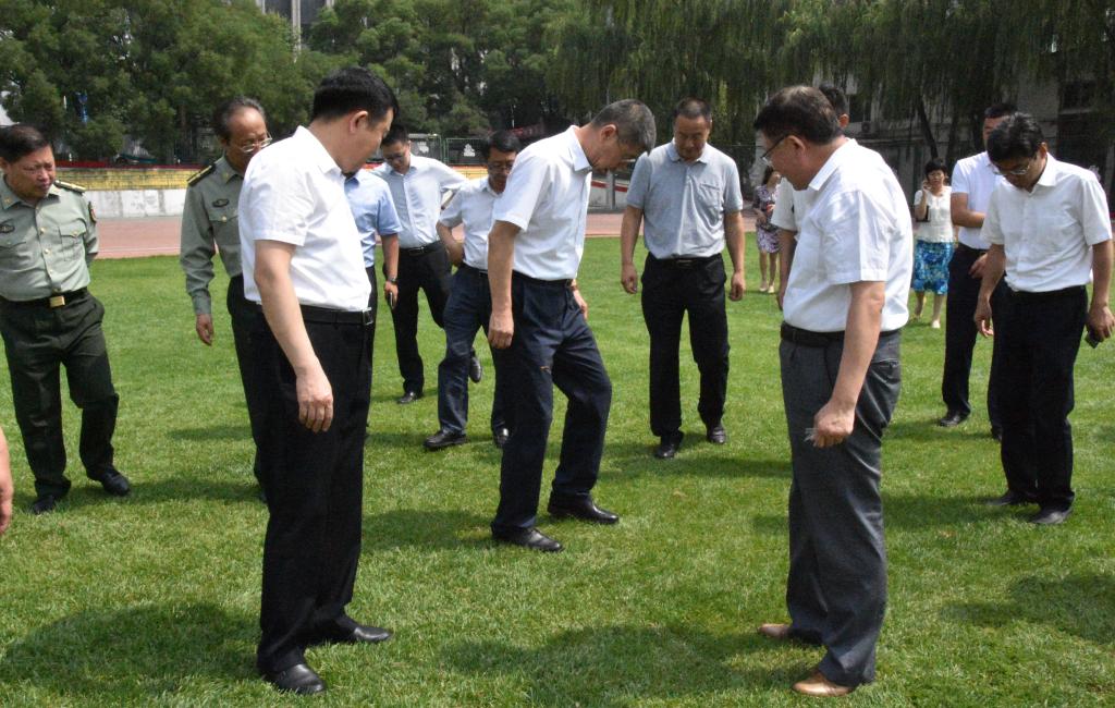 张复明一行首先来到在我校主体育场,实地查看了草坪铺设情况及周围环境,仔细询问安保措施是否到位、灯光和电子屏等是否符合二青会要求等。随后,张复明副省长一一走进运动员休息室、新闻发布厅、仲裁室、督查室等各类功能用房,详细了解场馆设施情况。检查中,他对我校二青会相关赛事筹备工作表示满意,并针对一些细节问题提出了改进意见和建议,希望学校做出进一步完善,扎实推进各项工作,高质量完成所承办赛事任务。