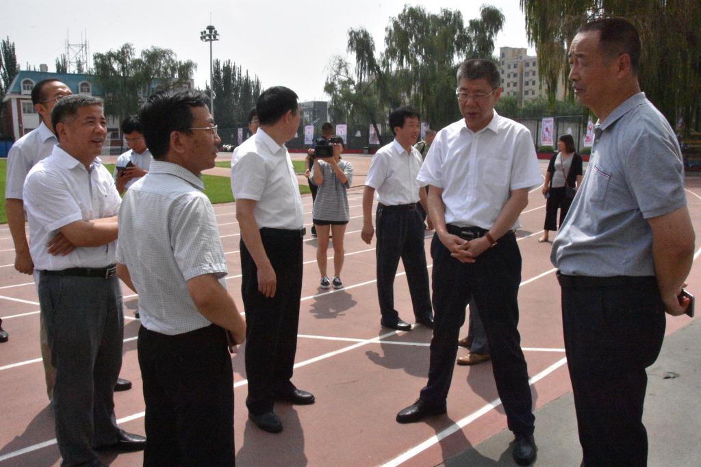 7月18日上午,副省长张复明在省教育厅、省体育局等相关单位领导陪同下莅临我校,就二青会场馆建设情况进行检查指导。校党委书记李忠人、校长沈兴全、副校长曾建潮、雷锋斌及党办校办、党委宣传部、后勤管理处、安全保卫部(处)、校团委、体育学院等相关单位负责人陪同。
