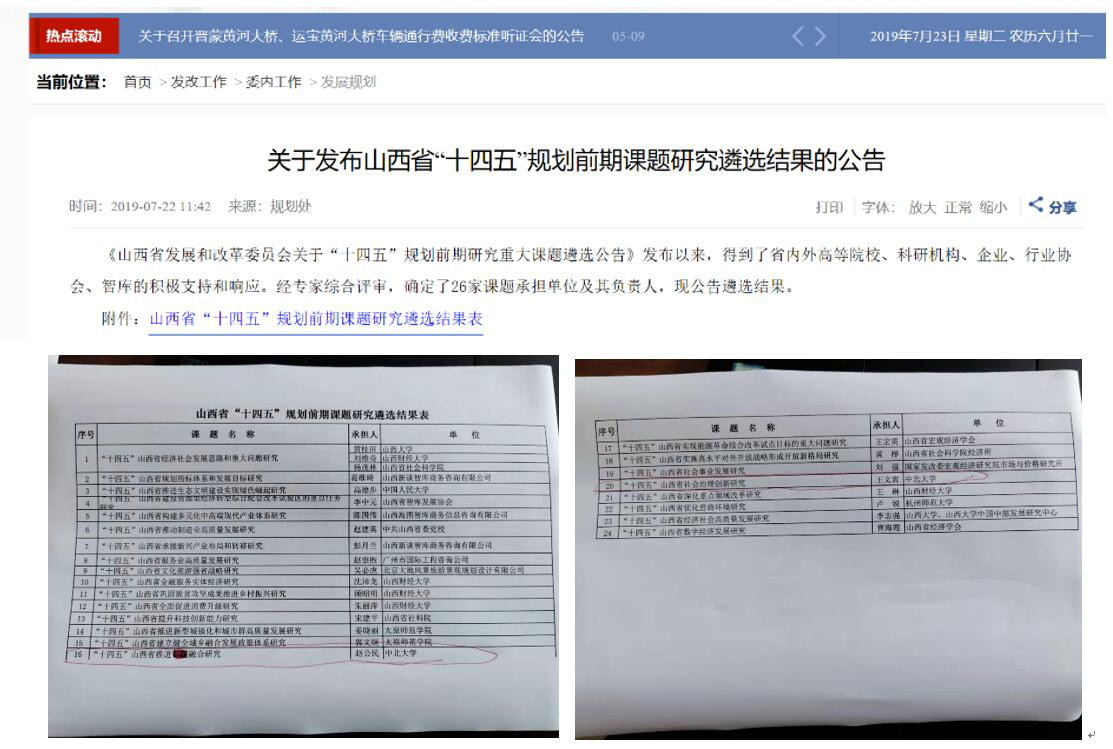 自2019年6月山西省发展和改革委员会关于“十四五”规划前期研究重大课题遴选公告发布以来,经济与管理学院积极组织学科团队结合自身优势进行申报,共申报6个项目,经专家综合评审,成功获批2项。体现了经济与管理学院与地方经济发展深度融合初见成效,提升了学院在地方经济发展中的话语权。