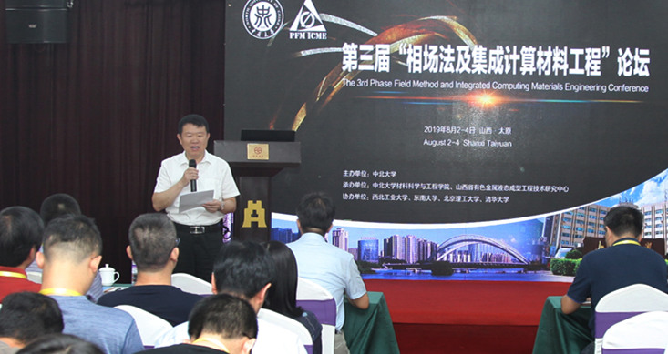 第三届相场法及集成计算材料工程(PFM-ICME2019)论坛于8月2日至4日在太原市黄河京都大酒店召开。本次论坛由我校主办,山西省有色金属液态成型工程技术研究中心承办,西北工业大学、东南大学、北京理工大学、清华大学协办。我校校长沈兴全、李魁武院士、王一德院士、谢建新院士等担任顾问,赵宇宏教授担任大会主席。