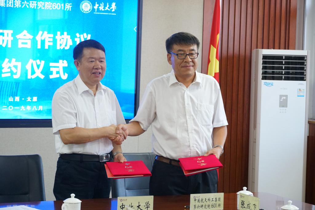 8月21日,我校与中国航天科工集团第六研究院601所产学研合作协议签约仪式在德怀楼第四会议室举行。中国航天科工集团第六研究院601所所长宫秀良与我校校长沈兴全代表双方在合作协议上签字。