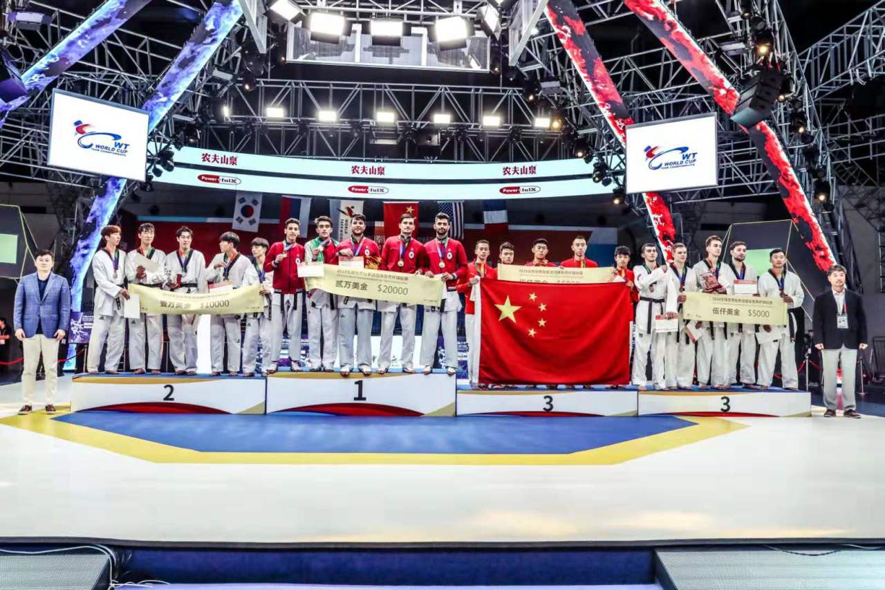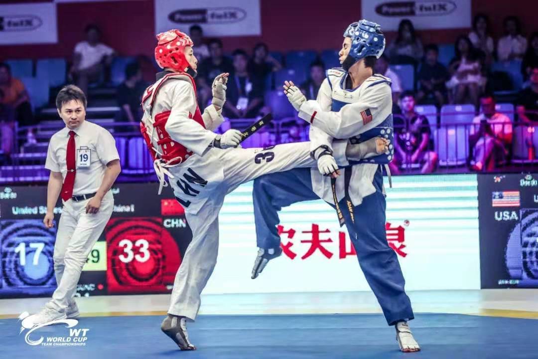 8月24日,2019年世界跆拳道团体世界杯锦标赛在无锡太湖国际博览中心进行。在当天进行的男子团体铜牌争夺赛中,由我校体育学院研究生宋国栋和队友赵鑫博、王金宇、宋兆祥、林文烨五位队员代表中国队出战,以绝对优势赢得铜牌。