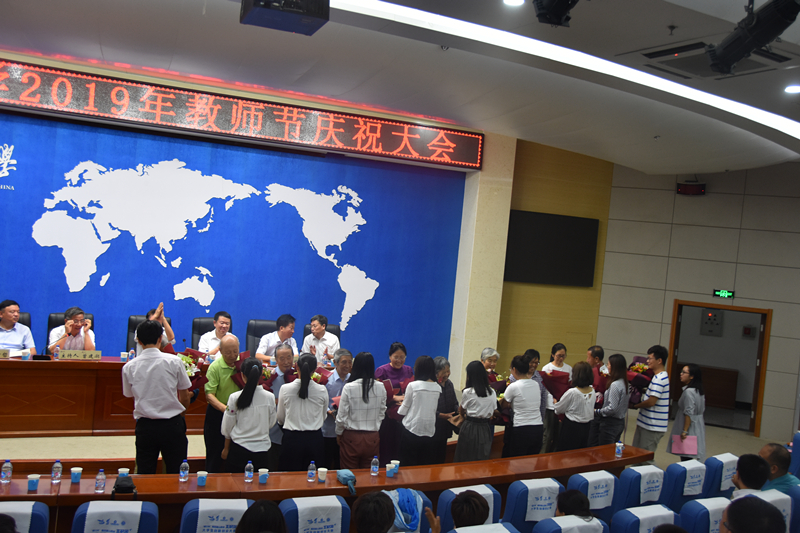 在第35个教师节来临之际,为表彰先进,树立榜样,我校在瑾瑜国际会议中心举行2019年教师节庆祝大会。全体校领导出席大会。各单位负责人、全体受表彰教师、退休教师代表、全体新入职教师、教师代表及学生代表参加了大会。副校长曾建潮主持会议。
