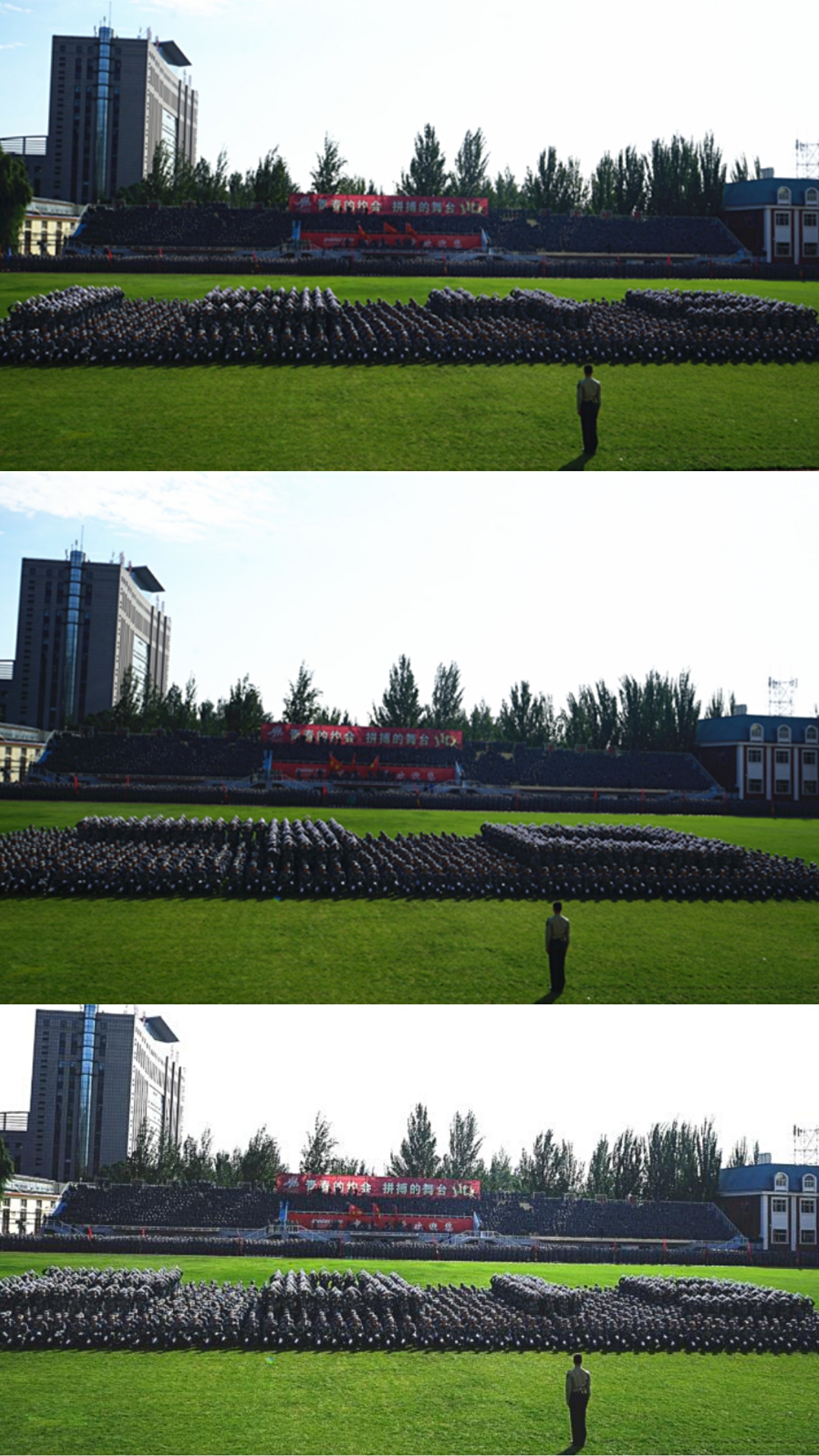 庄严的升旗仪式后,分列式阅兵正式开始,16个方阵整齐划一,同学们精神抖擞,昂首挺胸,迈着铿锵有力的步伐,喊着震天的口号,依次通过主席台接受检阅。充分展示了14天军事训练的成果,彰显了中北学子意气奋发的精神风貌。