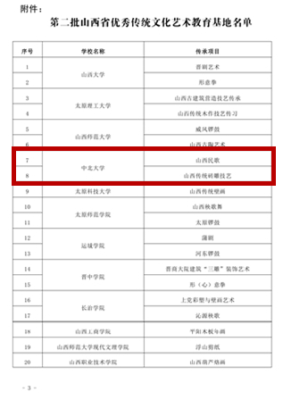 省教育厅日前公布第二批全省优秀传统文化艺术教育基地名单,来自全省18所高校的26个基地入选。其中,我校获批山西民歌、山西传统砖雕技艺两个基地。