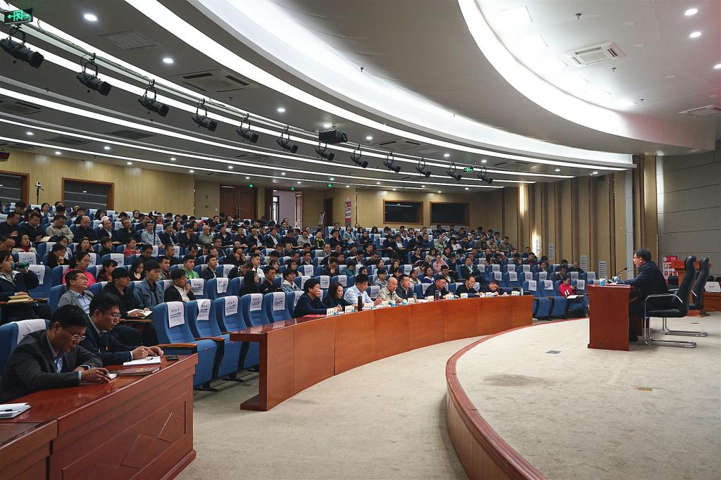 为帮助全体党员更加精准地把握主题教育内涵,切实以主题教育带动引领各项工作落地落实,10月9日,我校举行“不忘初心、牢记使命”主题教育专题党课。校党委书记李忠人以《不忘教育强国初心,牢记人才培养使命,奋力以高水平教学研究型大学建设业绩成就“百年百强”中北梦》为题主讲党课。省委主题教育第八巡回指导组组长王进喜、指导组成员刘志强、全体在校校领导、全体中层干部、各党支部书记和基层党员代表等参加了学习。朔州校区处级干部通过视频直播方式在朔州同步收听了此次党课。校党委副书记薛智主持学习。