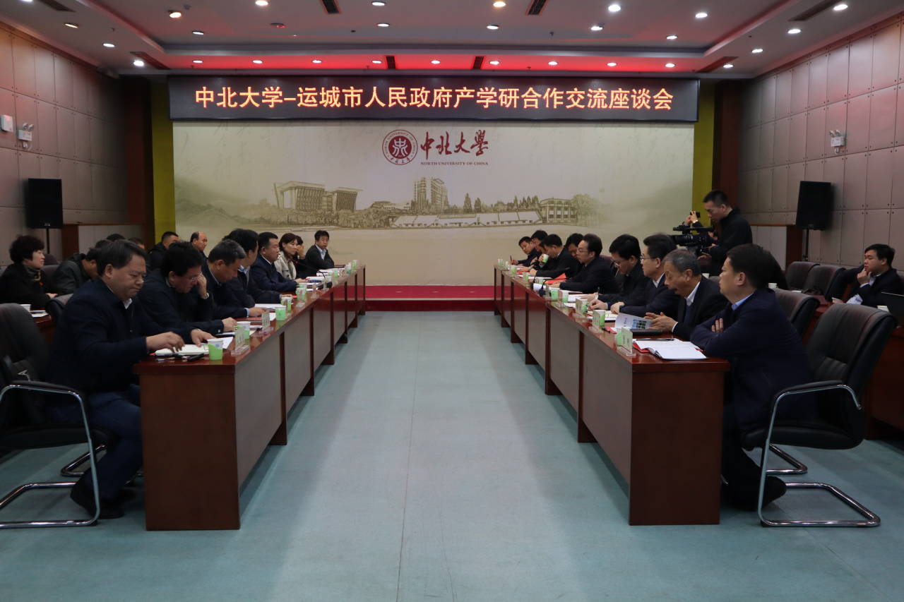 10月16日,运城市市长朱鹏、副市长卫再学带领运城市发改委、教育局、科技局、商务局、工信局、科协、盐湖区等相关部门负责人一行11人来校就产学研深度合作进行对接交流。校长沈兴全、副校长赵贵哲出席座谈会。科学研究院、学科建设与学位办、中北大学科技园、中北新缘科技中心负责人及相关学院负责人参加座谈会。副校长赵贵哲主持座谈会。