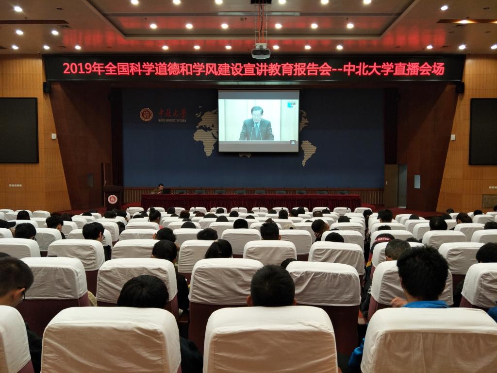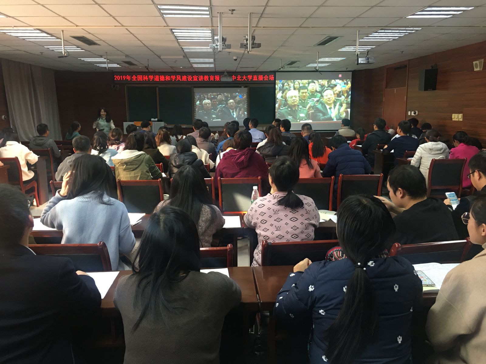 为学习贯彻习总书记关于科学道德和学风建设重要指示精神,大力弘扬科学家精神,加强作风和学风建设,11月13日,2019年全国科学道德和学风建设宣讲教育报告会在人民大会堂举行。我校在图书馆学术报告厅、瑾瑜国际会议中心、主楼815教师培训室等设置直播会场,各学院、朔州校区4500余名师生通过网络直播集中收看了报告会。