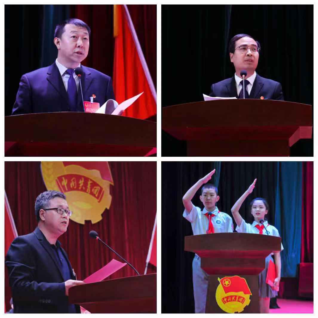山西大学团委书记张树峰代表兄弟院校团委向大会的召开表示热烈祝贺;我校工会副主席赵振波代表学校群团组织向大会的召开表示热烈祝贺。附属学校少先队员代表向大会致辞。同时,大会收到了以清华大学、北京大学为代表的省内外高校、团委的众多贺信贺电。
