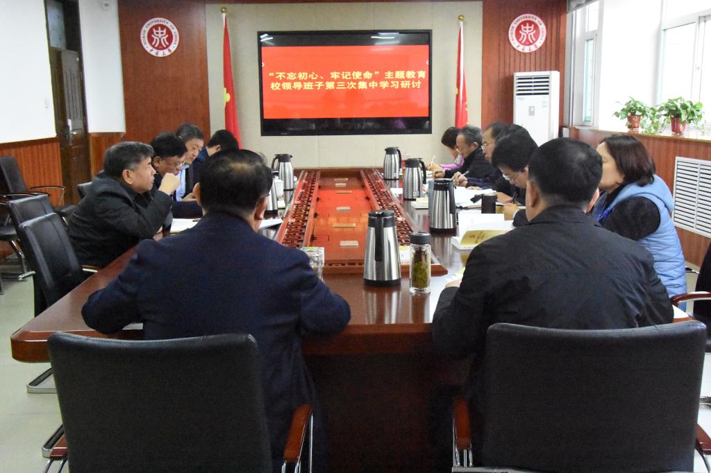 11月25-26日,校党委“不忘初心、牢记使命”主题教育第三次集中学习研讨会在德怀楼第四会议室举行。全体在校校领导及党委常委参加会议。会议由校党委书记李忠人主持。