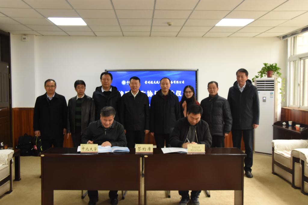 11月29日,贵州航天风华精密设备有限公司与我校共建“风华中北航天材料工艺研究院”协议签字仪式在德怀楼举行。校党委书记李忠人陪同来宾参观调研并出席座谈会,校长沈兴全见签,公司董事长廖其刚与副校长曾建潮代表双方在合作协议上签字。