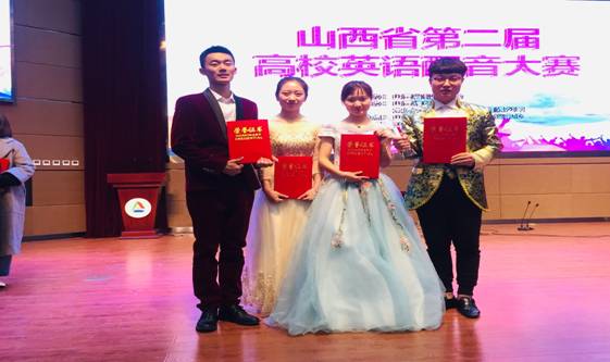12月1日,第二届高校英语配音大赛总决赛在山西传媒学院圆满落幕。此次大赛吸引了来自全省21所高校的近万名大学生参与。经过校选,21支代表队参加总决赛。根据选手综合选材、发音、剧情表现力和团队合作等方面的表现,评委们最终评出特等奖1名、一等奖2名、二等奖5名、三等奖2名、优秀奖11名。我校陈亦文、高国华、杨家成和赵航四位同学组成的参赛队(指导老师李兵绒、高晋芳)获得得团队二等奖的好成绩。