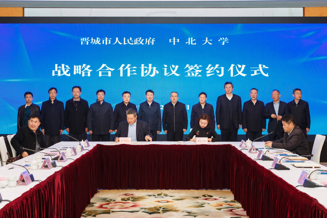 12月26日,我校与晋城市战略合作协议签署暨 “中北大学晋城先进材料与智能装备研究院”揭牌仪式在晋城举行。校长沈兴全与晋城市市长刘锋共同为“中北大学晋城先进材料与智能装备研究院”揭牌;副校长李东光、晋城市副市长梁丽萍代表双方在合作协议书上签字。省教育厅科学技术与信息化处处长赵瑞出席签约仪式。梁丽萍主持签约仪式。