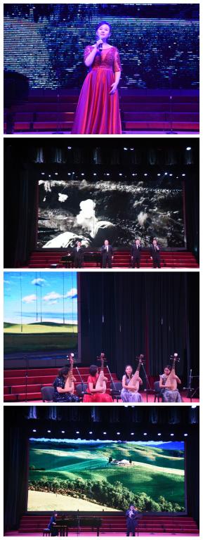 音乐会上,艺术学院师生以大合唱、独唱形式奉献了《天下黄河九十九道弯》《赶牲灵》《莫斯科郊外的晚上》《让世界都赞美你》《感恩的心》等中外经典歌曲以及器乐演奏《Baby yetu》《草原小姐妹》等10余个节目。专业级的表演引发现场师生一次次热烈的掌声。最后,师生们全体起立,满怀对祖国、对明天的美好期望共同唱响《歌唱祖国》。音乐会圆满结束。