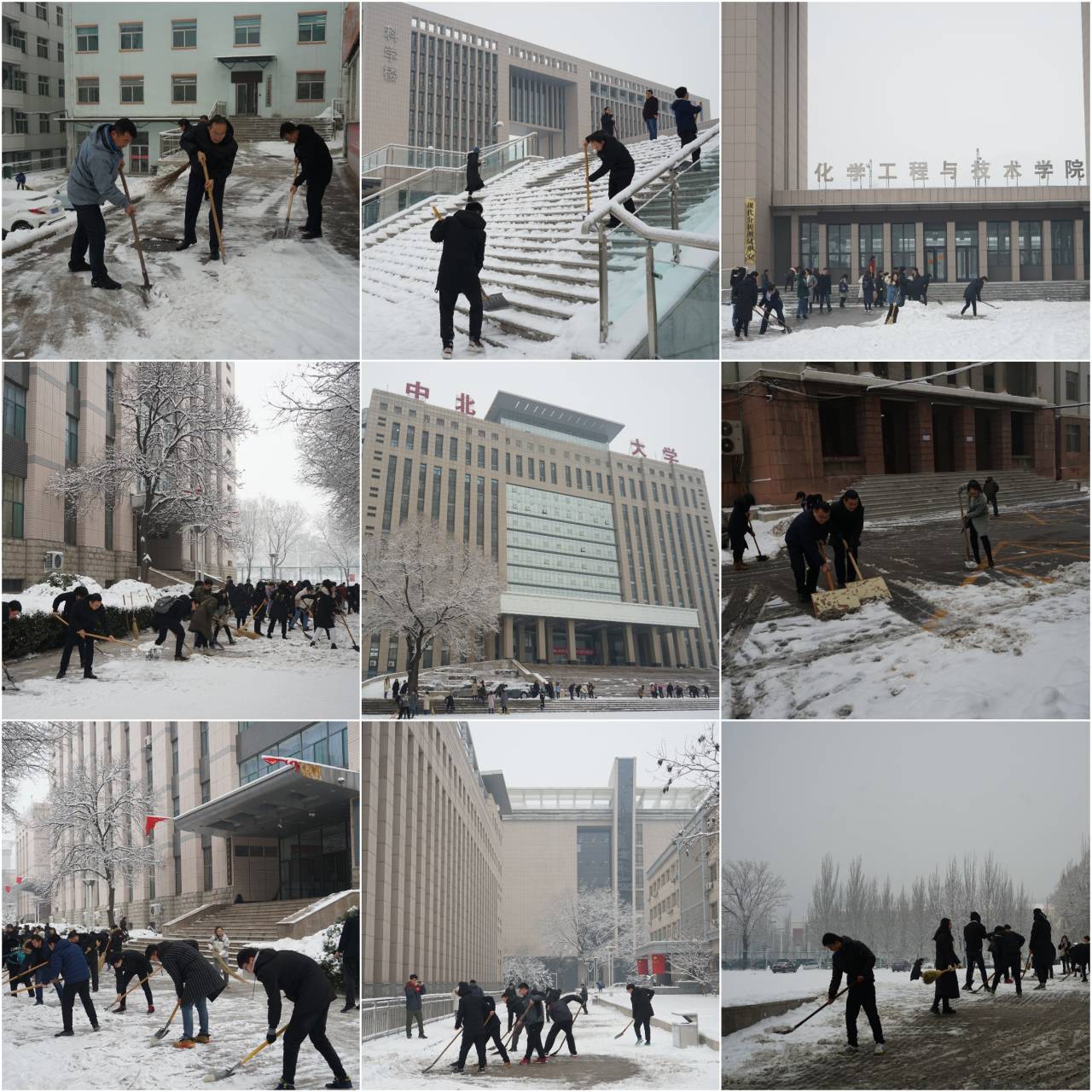 昨日爆红朋友圈的一场大雪,给大家带来美轮美奂的景色和喜悦之情的同时,也对人们安全出行造成了极大影响。按照太原市创城办、太原市文明办关于党员和各级领导干部带头开展清除积雪活动的通知要求,为更好地服务师生出行,1月6日,我校及时组织开展“清扫校园积雪,创设美好环境”主题党日和志愿服务活动,各基层党委、党总支和直属党支部成员参加了活动。