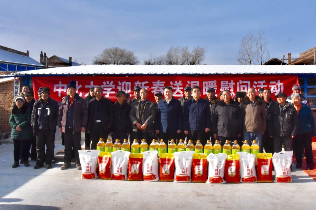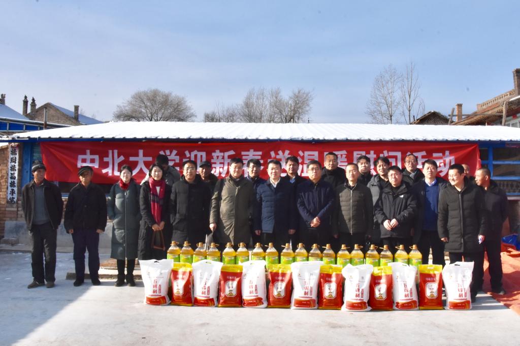 1月15日,在新春佳节即将来临之际,校领导沈兴全、薛智、雷锋斌、赵贵哲、潘晋孝、苏铁熊等带领30个二级单位党组织负责人,前往学校定点帮扶的五寨县东秀庄乡常家坡村、后五王城村开展扶贫慰问。