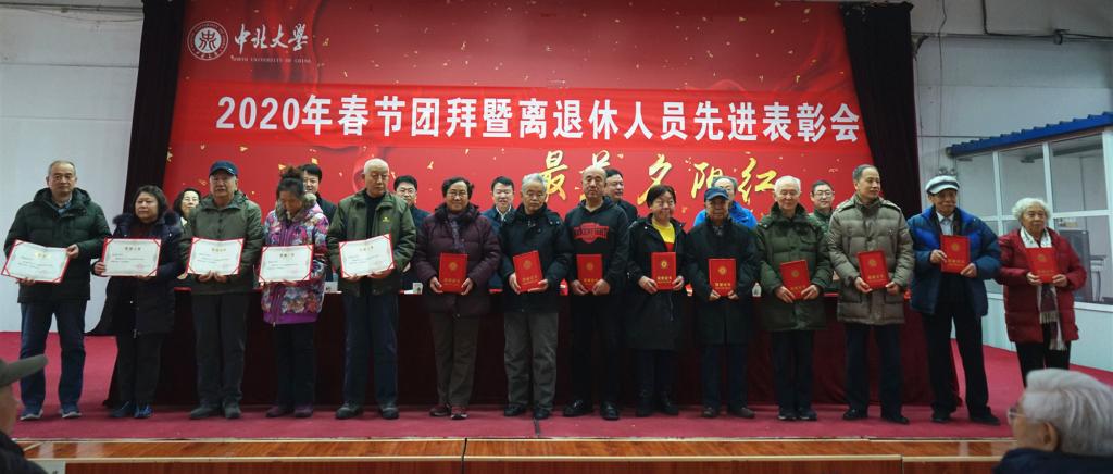 大会首先为受表彰老同志进行颁奖。一年来,在校党委、校行政的高度重视下,在各位老同志的大力支持和离退休人员管理处的积极努力下,离退休工作扎实开展、成绩斐然:处党委获评校标杆党委,退休八支部和退休九支部获评校样板支部,“三委一体”工作经验作为2019年全省老干部工作会议交流材料,山西日报典型报道了我校离退休党员学习成效,老年大学影响日益扩大,老龄委工作蓬勃开展,中北老年之家公众号投入运行,祖静教授被中组部授予全国离退休干部先进个人荣誉称号、被中国老科协授予优秀共产党员荣誉称号,潘玉田教授荣获中国老科学技术工作者协会奖称号,11名老领导、老教授获聘为关工委委员,12名老党员成为校园环境和安全保卫志愿督察员。体现了离退休人员发挥正能量、做出新贡献的生动实践。