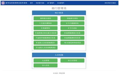 面对突发的新冠肺炎疫情,学校高度重视疫情防控工作,第一时间成立了防控工作领导小组,建立了各二级单位疫情信息报送员制度,形成了严格的疫情管控上报机制,及时对新冠肺炎疑似病例、确诊病例,以及与上述病例密切接触者的信息进行统计报送。为保证大量疫情动态信息能够及时、准确报送,学校疫情防控工作领导小组责成校内专门技术团队,加班加点,成功开发出了新型冠状病毒肺炎防控系统。