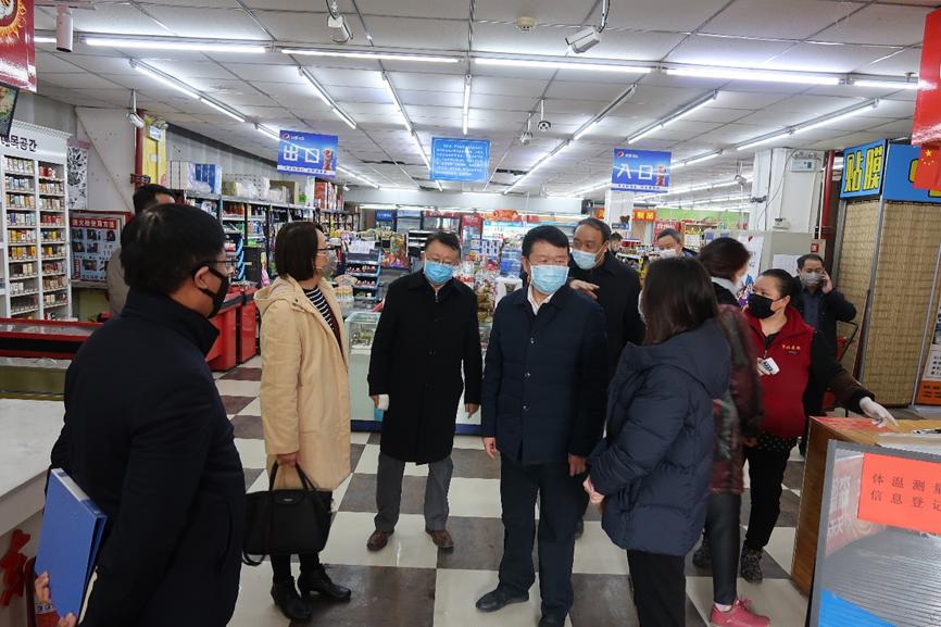 在森德超市,指导组查看了我校教职工所需的粮食、食用油、食盐、蔬菜、肉制品等生活必需品的储备和销售情况。