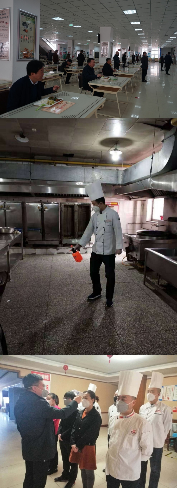 学生模拟就餐演练在东区文韬餐厅进行。学生食堂采取“就近供餐、错峰用餐、有序领餐、先来坐餐、坐满即走”的原则。演练开始前,餐厅工作人员首先对餐厅进行了全方位消杀。演练中,所有人员均佩戴口罩,听从指挥,按照地面标识有序排队进入餐厅。就餐人员在餐厅入口处由工作人员逐一测量体温(如有体温异常人员送至滞留区进行二次测温,体温正常方可进入餐厅,异常则通知校医院进行处置。)进入餐厅后,按照地标保持间隔1.5米左右排队循序往前,等待领餐。取餐后按1人1位就坐用餐,并记住本人就座的餐位号码。就餐结束后,马上戴好口罩,从餐厅两侧出口迅速离开。后领餐者,如发现无座位,则打包食物,离开餐厅。