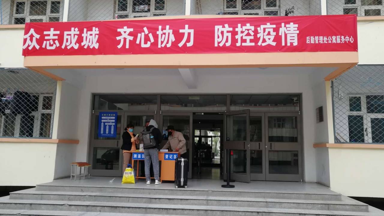 早上7:00,虽然天气寒冷,但全体工作人员均已到位,等候学生到来。全体人员全程佩戴口罩,各学院负责人值守各自学院报到点,安保人员全程负责维持秩序,校医院医护人员、消杀人员现场随时待命。