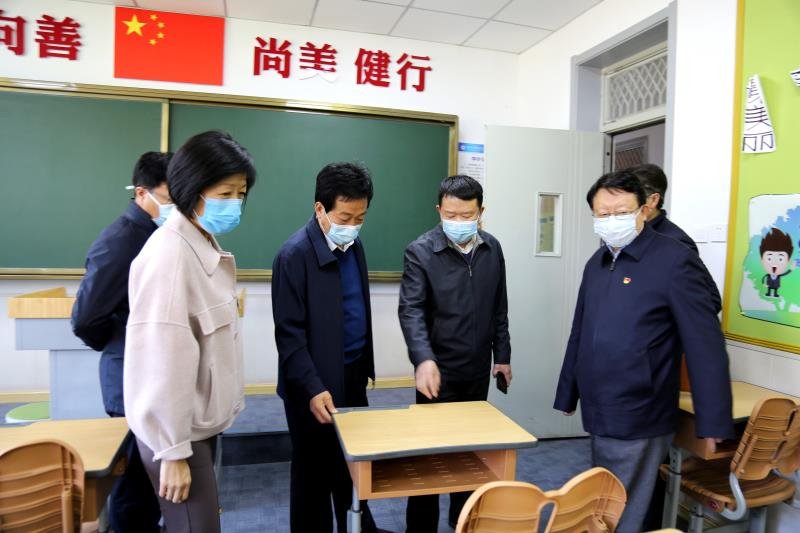 4月21日下午,校党委书记李忠人、校长沈兴全、副校长雷锋斌到附属学校调研指导初三年级复学准备工作。校疫情防控办公室主任叶玉刚、附属学校校长张峻岭、副校长李琪、张志岗等陪同调研。