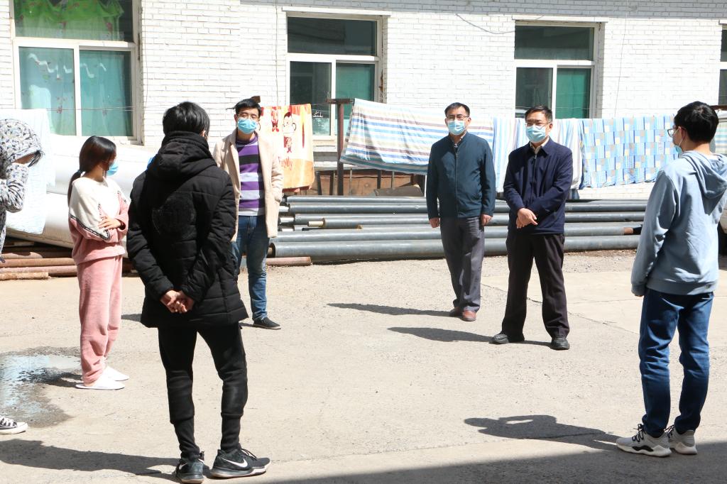 来到学生集中隔离观察区,薛智与同学们亲切交流,详细询问大家目前身体状况、口罩等防疫物资准备情况,了解同学们返回学校后在学习和生活上的需求,存在哪些急需学校帮助解决的问题,对学校疫情防控工作有哪些建议。同时叮嘱同学们要继续重视个人防护,注意身体健康,提高自身免疫力,保持良好的学习生活规律,用好时间充实自己。他要求学校各相关部门工作人员要坚持把学生的身体健康和生命安全放在首位,时刻关注返校学生们的身体情况,并为他们的正常学习生活条件提供保障,确保信息联络路径畅通,及时帮助同学们解决难题,持续不断形成合力,确保返校学生的身体健康,从细微处着眼,打通学校疫情防控的最后一公里。