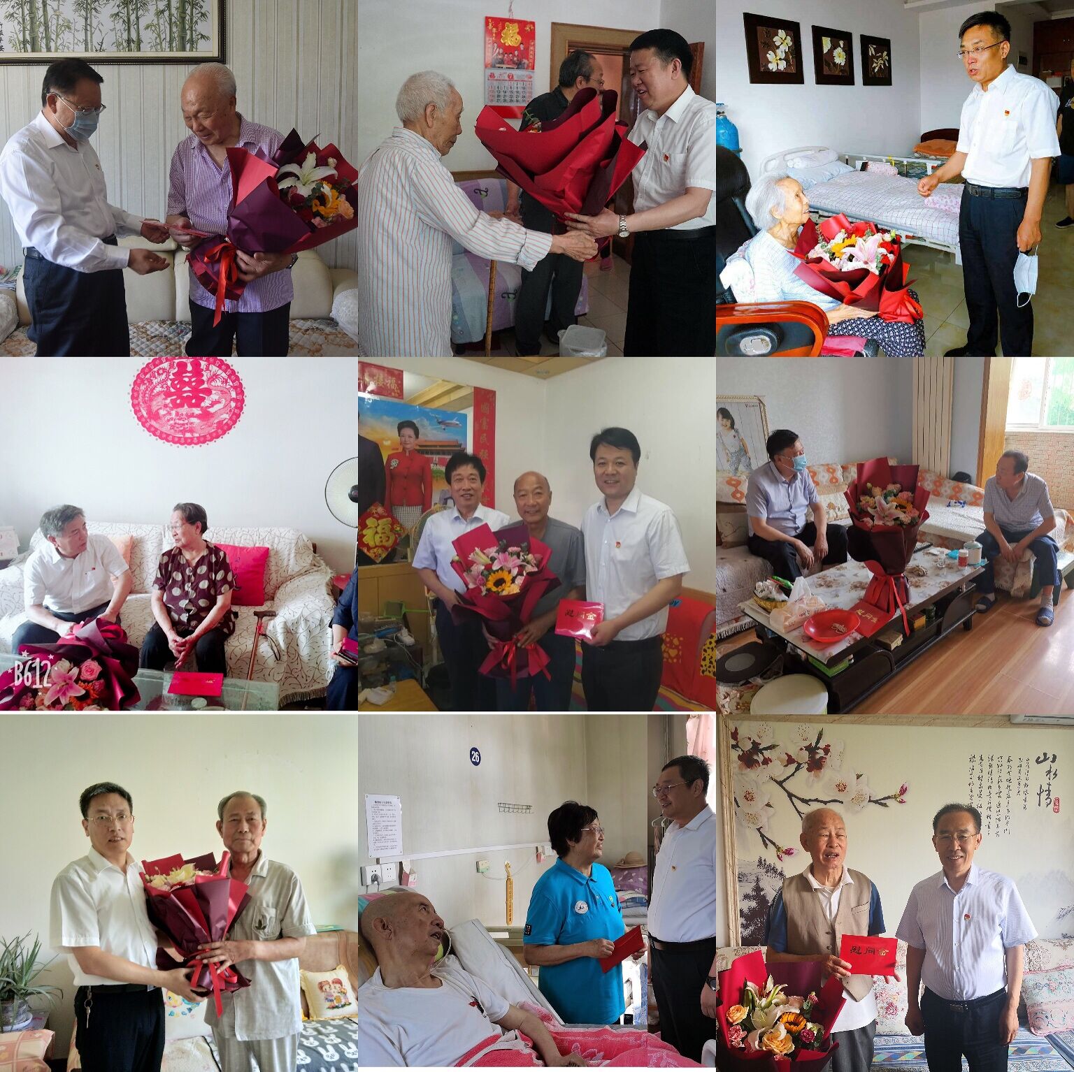 上午9:00,校领导分别带队看望慰问了建国前老党员和困难党员,为他们送上节日的问候和党组织的关怀和温暖。校领导先后来到建国前党员于守义、陈贵祥、薛安国、张映朴、陶蕴华、高文玉及困难党员马月亮、吴奇勇、刘进贤、薛扬声、米志德等家中,详细了解他们的健康状况与生活情况,叮嘱老党员要保重身体,同时继续关注学校发展,继续为学校建言献策;鼓励困难党员保持乐观态度,积极面对生活。