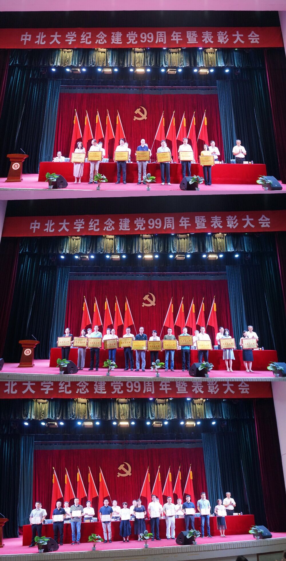上午10:00,我校纪念建党99周年暨表彰大会在科艺苑隆重举行。全体校领导出席大会并为获奖集体与个人颁奖。中层党员领导干部、党支部书记和党员代表等500余人参加了大会。