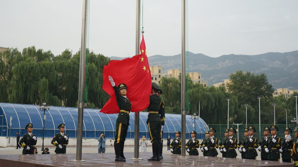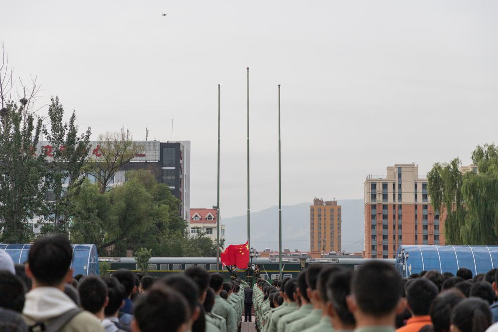 早上7点,瑟瑟秋风中,全体师生整齐肃立。飒爽的学校国旗护卫队员昂首阔步,护送国旗行至升旗台。随着嘹亮的国歌声响起,擎旗手振臂一挥,鲜艳的五星红旗在全体人员的注目下冉冉升起、随风飘扬。全体师生静默颔首、深切默哀,向为中国人民解放事业和共和国建设事业英勇献身的烈士们表达崇高的敬意。