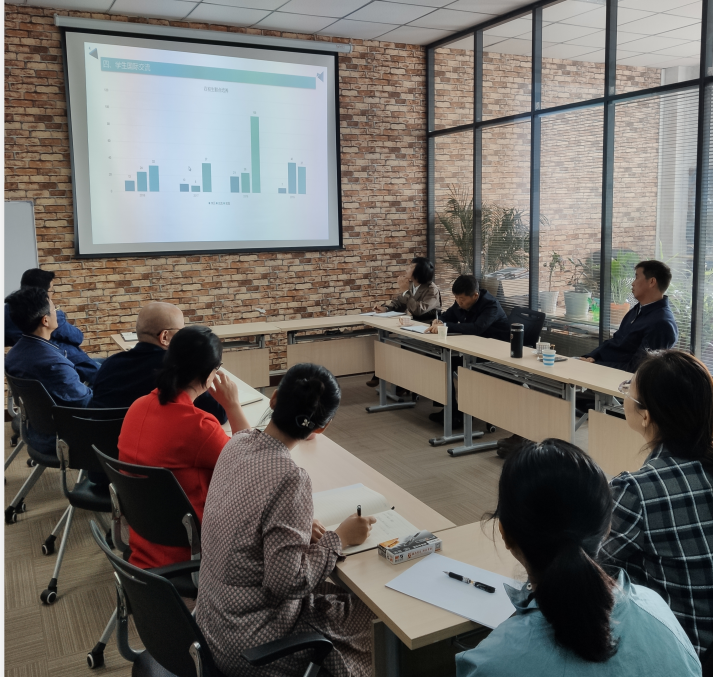 学院院长张宗胜就国际教育学院和国际交流合作处的职责分工、人员构成,以及学校的国际化师资队伍建设、在校生国际交流、外国专家和留学生工作等方面基本情况作了简要汇报,并介绍了今后一段时间国际教育学院在海外高层次人才引进、师生国际交流、依托“一带一路”国家大政方针优化整合学校国际资源、搭建国际科研合作创新平台等方面的工作思路、重点和发展方向。