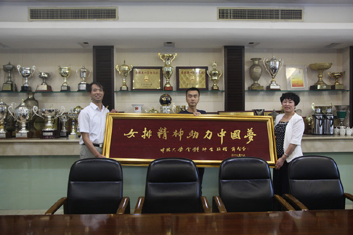 “金牌凝聚千钧力,锦匾融汇万缕情”。 多年来,中国女排以其“无私奉献、团结协作、艰苦创业、自强不息”的女排精神感召着一代又一代中北人,浸润太行精神的中北人,始终致力于将每一个中北人的梦想、体育强国梦与中国梦紧紧相连。在实现中华民族伟大复兴的征程上,秉持致知于行的校训,继承和发扬女排精神,也是我们每一个中北人凝结在血液中的不朽信念和执着坚守。
