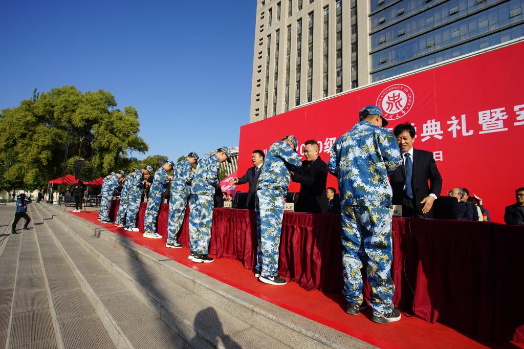 汾水唱龙山歌,中北欢英才汇。10月12日,我校2020级新生开学典礼暨军训动员大会在行知广场隆重举行。中国工程院院士、我校教授、博士生导师李魁武,校党委书记沈兴全、校长熊继军及其他在校校领导,校友代表、东为集团董事长刘秋明及总经理周瑞校友出席大会并为新生代表佩戴校徽。各单位负责人及万余名新生、部分新生家长参加了大会。