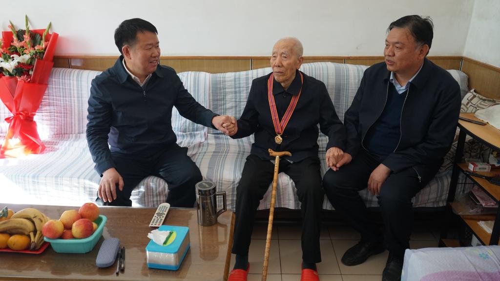 在两位老同志的家中,沈兴全分别为他们佩戴了纪念章,并送上鲜花和慰问品。校领导深情握着两位老人的手,与他们一起追忆了难忘的峥嵘岁月,感谢他们为保卫国家和人民所作出的贡献,高度赞扬了他们为国家、为人民、为历史做出的不朽功勋。同时询问了两位老人的生活情况和身体状况,转达了学校的关心和问候。希望他们继续关心和支持学校的发展,保重身体,乐享晚年。