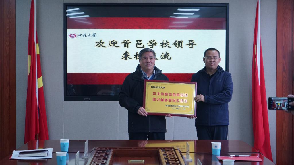 李凯介绍了首邑学校基本情况。他对我校体育学院多年来定期选派学生无偿支教的善行表示感谢,高度赞扬了我校学生不畏艰苦、勇挑重担、认真支教、爱生乐教的高尚品德。并向我校赠送题有“中北俊彦绘首邑锦绣,德才兼备显名校担当”的牌匾以表谢意。