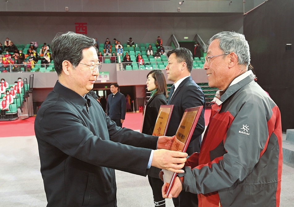 11月26日,山西省十大群众文化活动在滨河体育中心闭幕。省委书记、省人大常委会主任楼阳生出席闭幕式并为获奖团队代表颁奖。我校合唱团合唱曲目《亲圪蛋下河洗衣裳》《天下黄河九十九道湾》荣获“蹚出新路子、唱响新时代”合唱大赛一等奖第一名,并受邀参加闭幕式优秀作品展演。艺术学院院长王燕平作为获奖团队代表上台领奖。