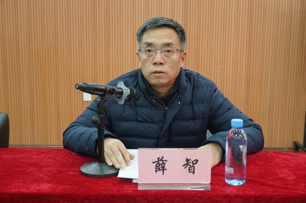 薛智代表学校致欢迎辞。他表示,我校始终致力于非物质文化遗产的保护和传承工作,目前已完成国家艺术基金秧歌剧《孟母三迁》和儿童剧《太行花》等项目11项。学校将认真落实国家和省相关部门对非遗研培工作的有关部署,为做好非遗传承贡献力量。