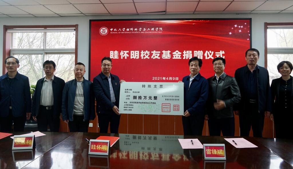 捐赠仪式上,眭怀明表达了对昔年母校培育的感恩之意和此次重回母校的喜悦之情,介绍了公司的基本情况,同时向所有材料学子发出邀请,表明公司的大门永远为中北学子敞开。